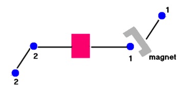 Two particles “twins” are launched in opposite directions. If the particle 1, during its journey, meets a magnet that deflects it upward, the particle 2, instead of continuing its trajectory in a straight line, deflects its direction at the same time, assuming a motion contrary to that of the particle 1: